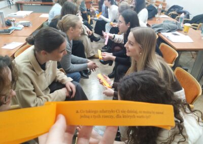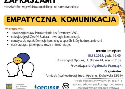 Studenci kierunków pedagogicznych i członkowie Koła Naukowego Pedagogów mieli możliwości uczestnictwa w wyjątkowych warsztatach psychologicznych prowadzonych przez przedstawicieli Fundacji Psychoedukacji INTRA (współpracującej z kołem naukowym), a sfinansowanych ze środków Samorządu Województwa Opolskiego w ramach zadania z zakresu zdrowia publicznego pn. “Marszałkowskie wsparcie zdrowia psychicznego”. Pierwsze warsztaty poprowadzone przez mgr Agnieszkę Smorąg nt.: “Sztuka życia z sensem” zgodnie z logoterapią V. Frankla odbyły się w dniu 12 listopada. Ich celem była pomoc młodym ludziom lepiej radzić sobie z wyzwaniami życia – ucząc, jak układać swoje relacje, emocje, myśli, duchowość i dbanie o ciało, zakładając, że to sfera duchowa nadaje kierunek i motywację do rozwoju. Drugie warsztaty (18 listopada) poprowadziła opiekunka Koła Naukowego Pedagogów – dr Agnieszka Franczyk i poświęcone były “Empatycznej Komunikacji”, przybliżając zebranym studentom podstawy “Porozumiewania się Bez Przemocy” (NVC) a także język “Żyrafy i Szakala”, dzięki czemu studenci nauczyli się wyrażać emocje i potrzeby w sposób który buduje, a nie rani, jak również mogli doświadczyć, jak empatia może skutecznie zmienić relacje.